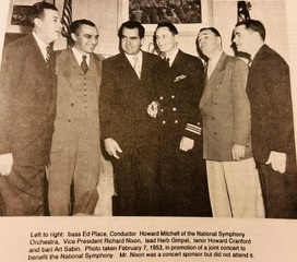 Joint performances with the National Symphony Orchestra continued in 1951 and 1953, the latter benefiting the Symphony and sponsored in part by Vice President Richard Nixon. The chapter leadership even posed for a promotional photo with Nixon.